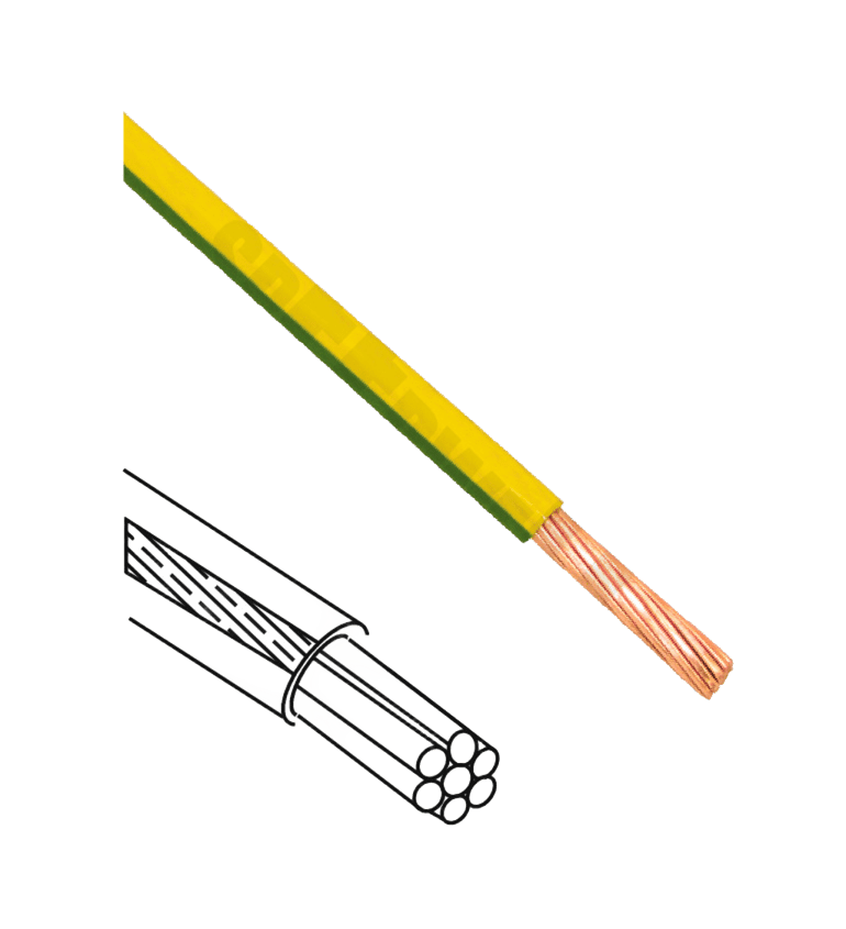 These are similar to Bare Copper Stranded Conductors and are Soft Drawn and covered with PVC Yellow Green which resembles grounding conductor, and used in Earthing and Lightning Protection system.