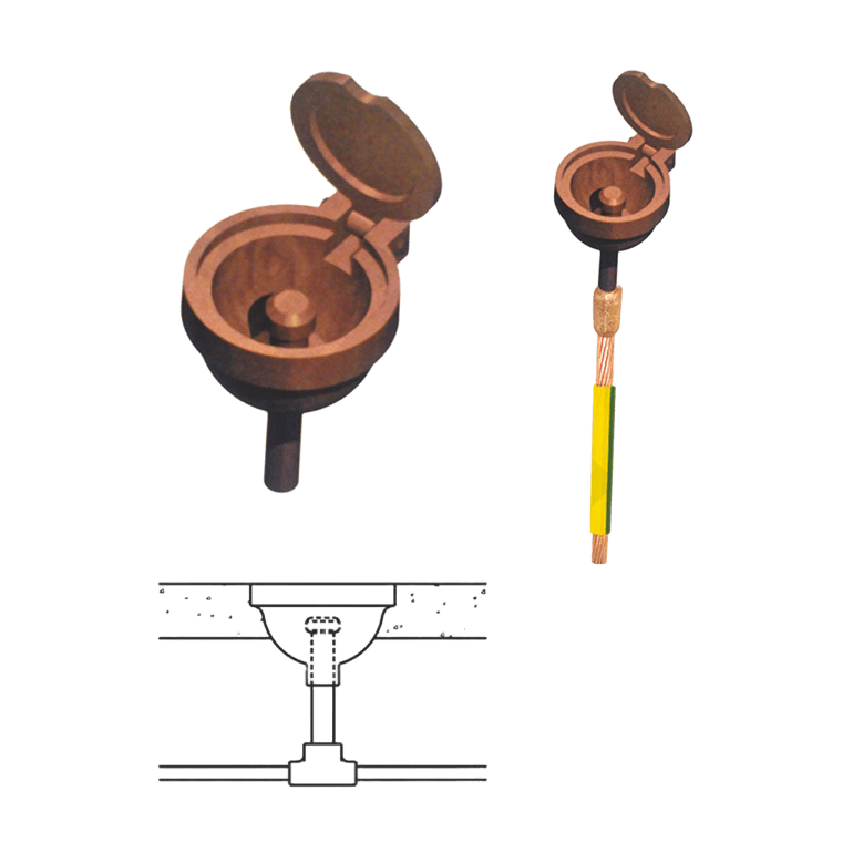 Static Earth Receptacle are used for sating into runways and roadways to provide a static discharge point for aircraft, fuel tankers, etc…